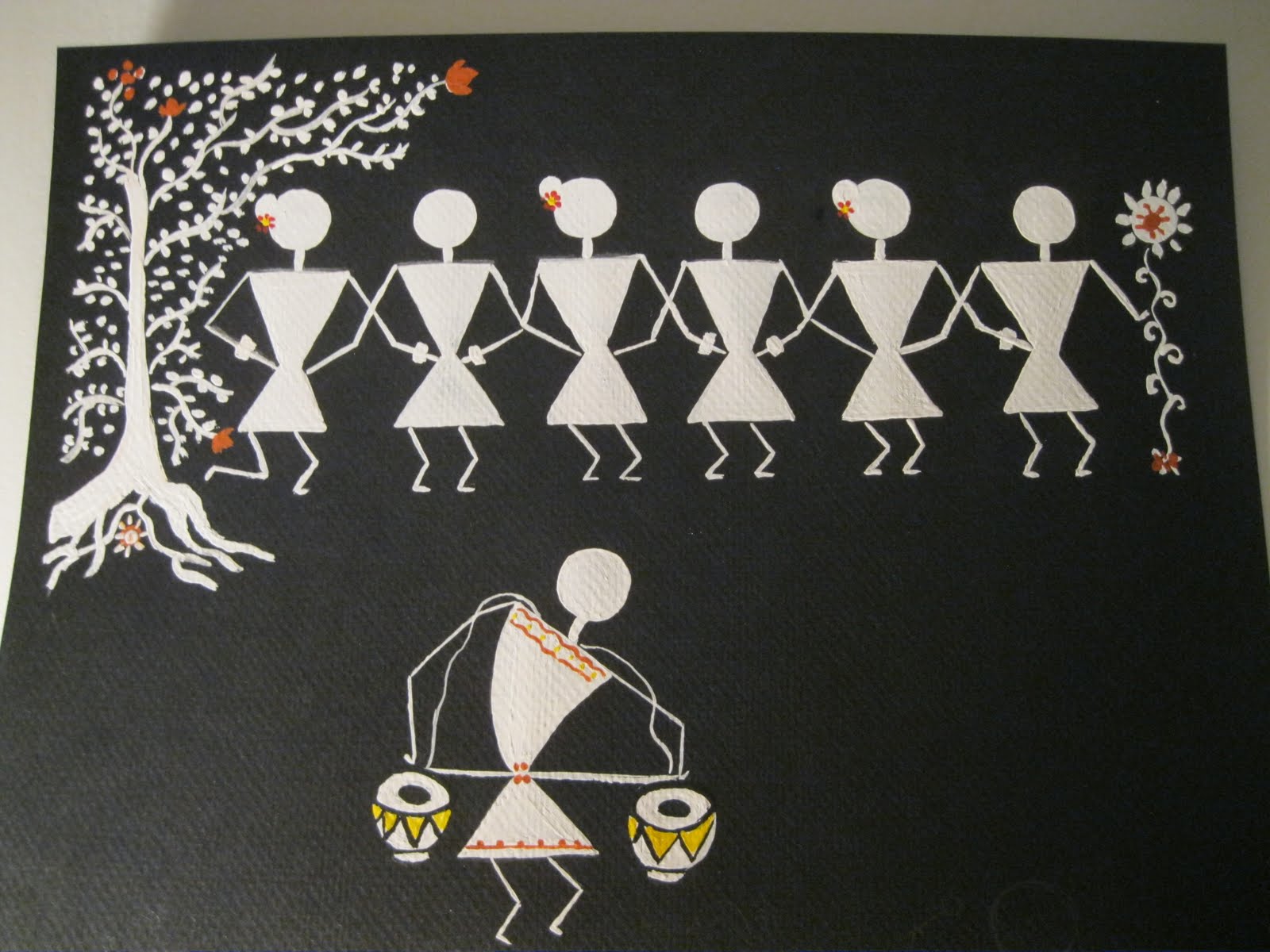 My first ever warli art.I am motivated and inspired a lot by all the warli art I saw in various blogs here.
